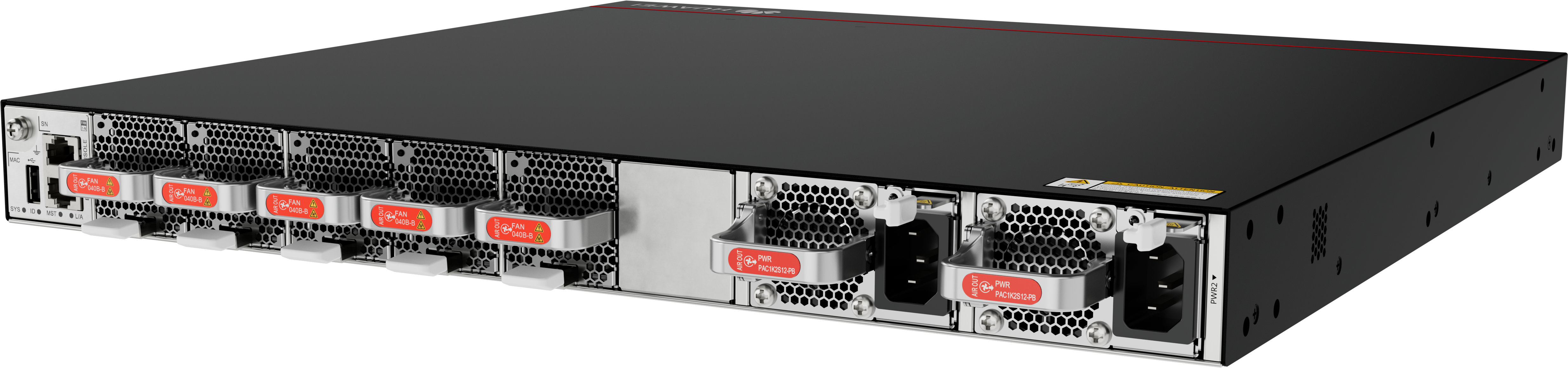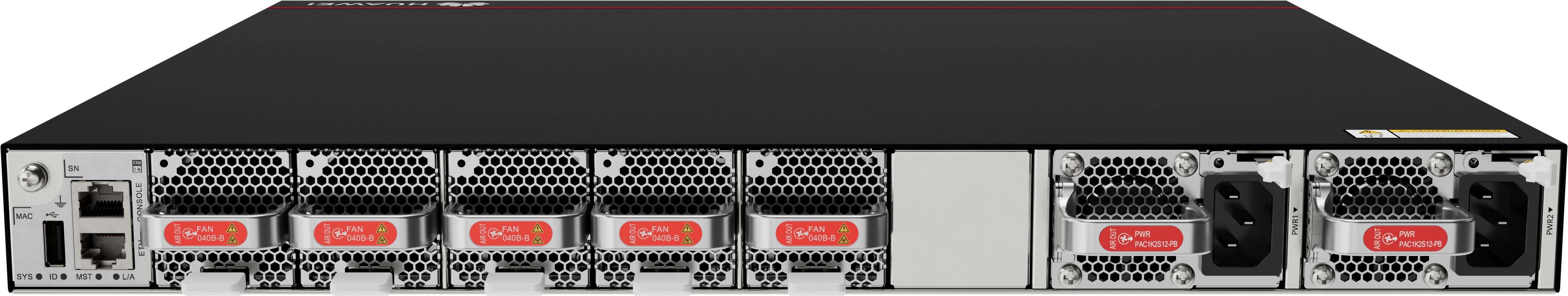 | Maximum power consumption [W] | 522 W (100% traffic load, short-distance optical modules on 24 x 200GE + 8 x 400GE ports, normal temperature, dual AC power modules) 770 W (100% traffic load, long-distance optical modules on 24 x 200GE + 8 x 400GE ports, high temperature, dual AC power modules) |