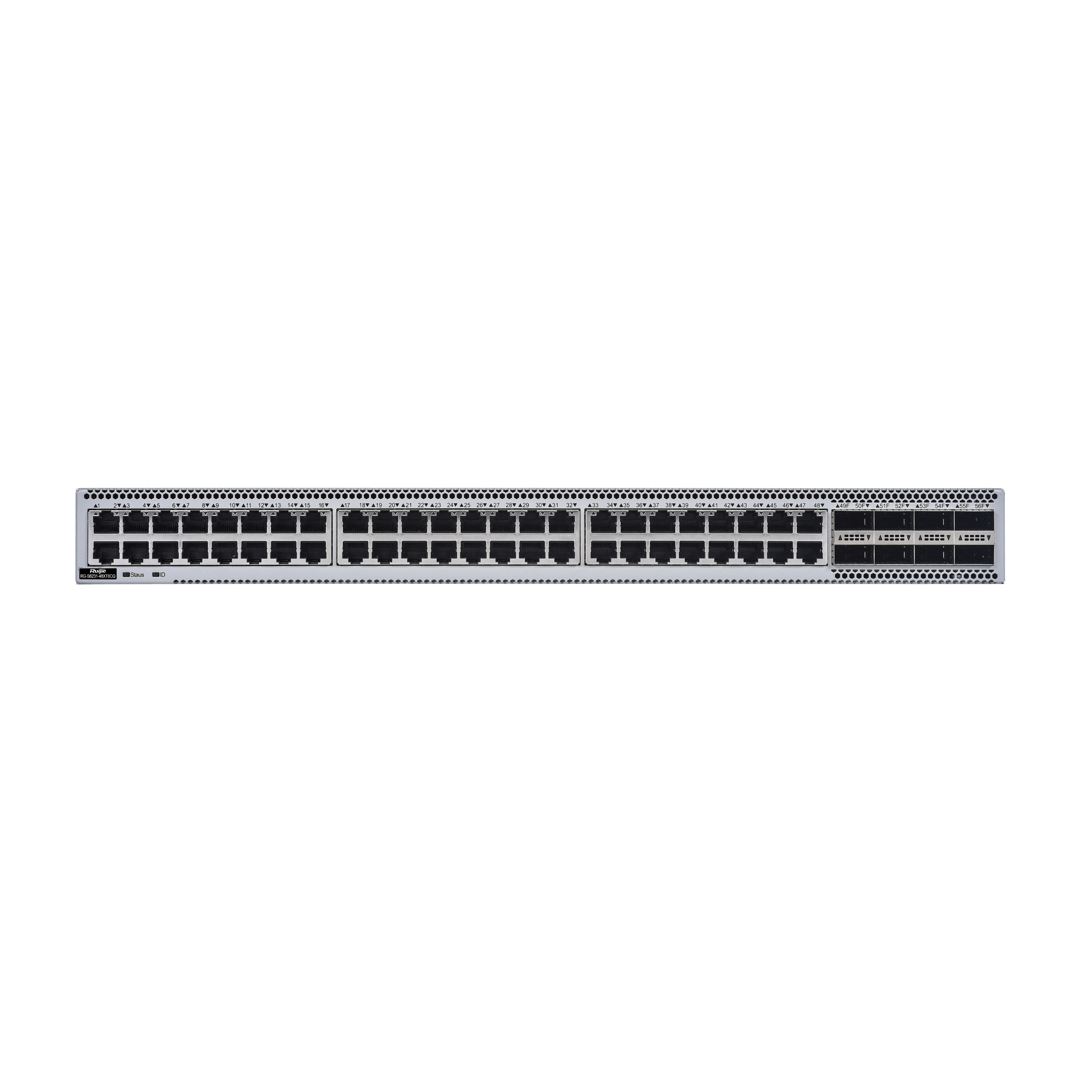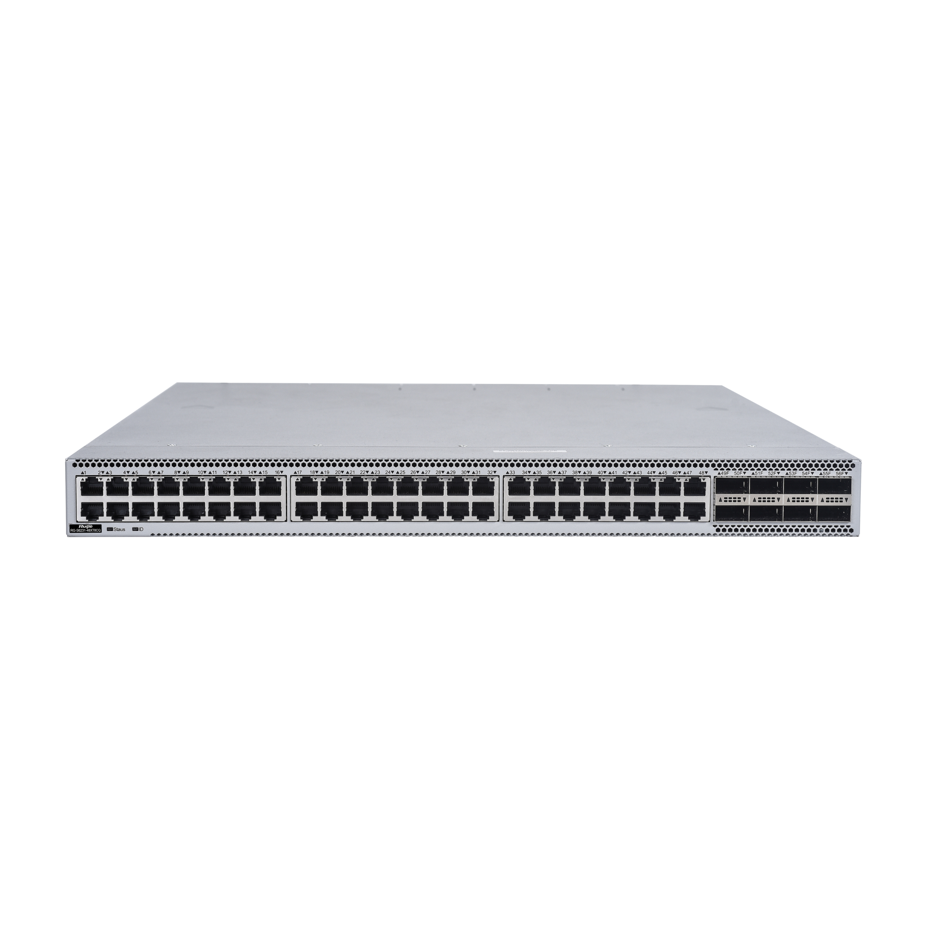 | RG-S6231-48XT8CQ | RG-S6231-48XT8CQ host, 48 10G (10GBASE-T) Ethernet electrical ports, 8 100G QSFP28 optical ports, 2 power supply slots, 4 fan slots, the host is fully equipped with 2 RG-PA550I-F power supplies/4 M1EFAN III-F fans |